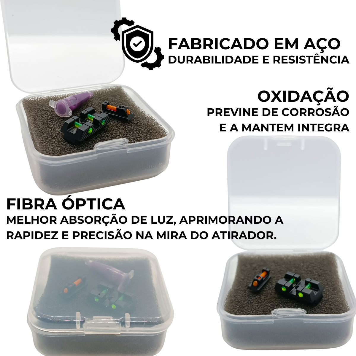 Alça com fibra óptica:Facilita a visualização do ponto de mira em diferentes condições de luz.