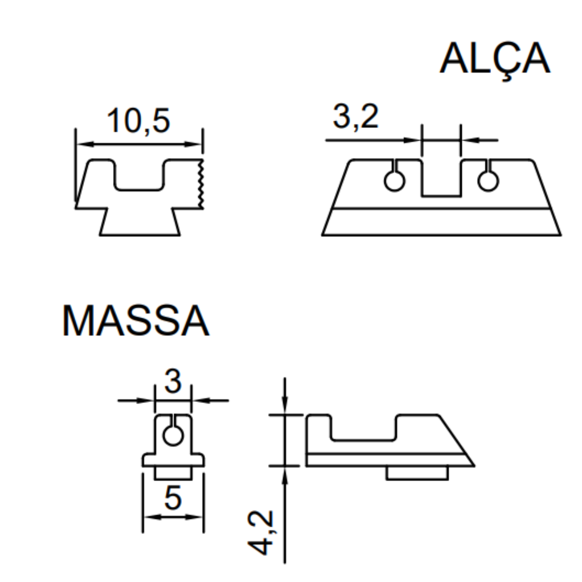 Alça Padrão 3,2mm:Visada aberta e rápida de adquirir. Ideal para uso geral e agilidade no disparo.