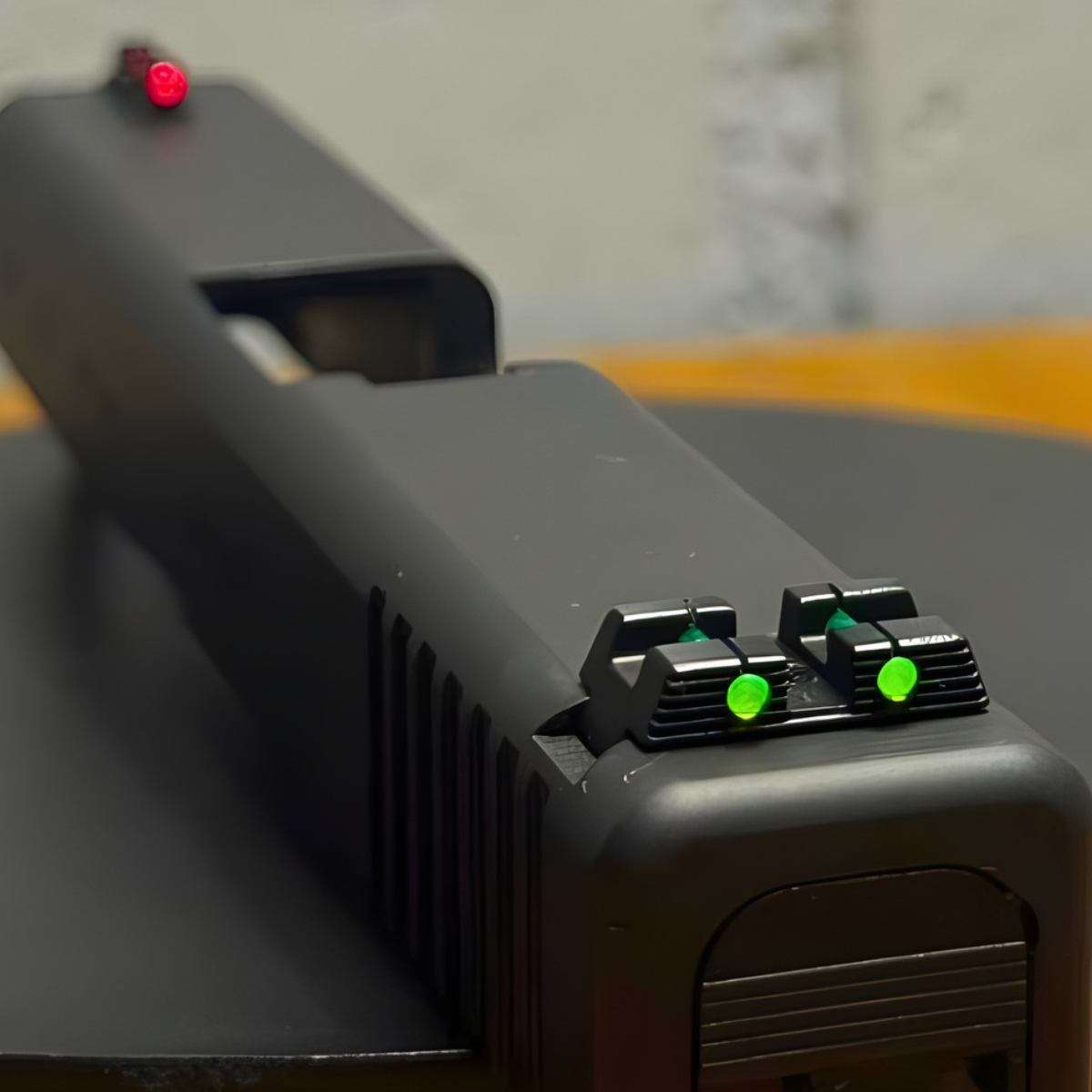 Cada detalhe, do material à fibra óptica, é pensado para garantir alinhamento limpo no disparo.